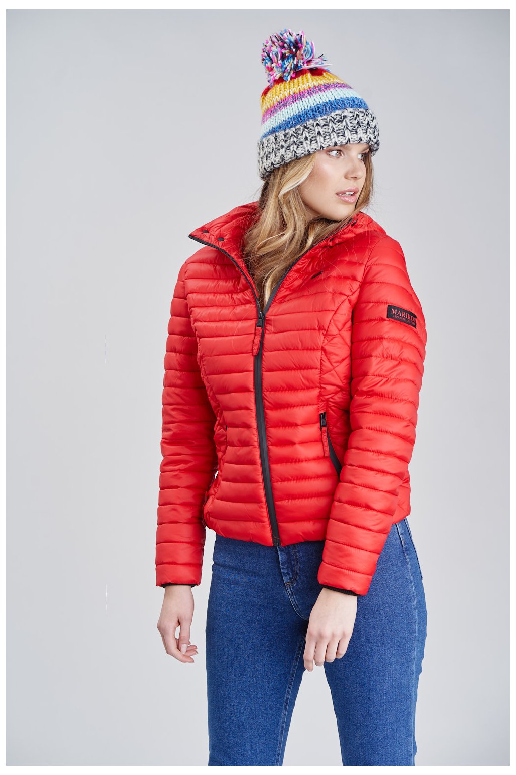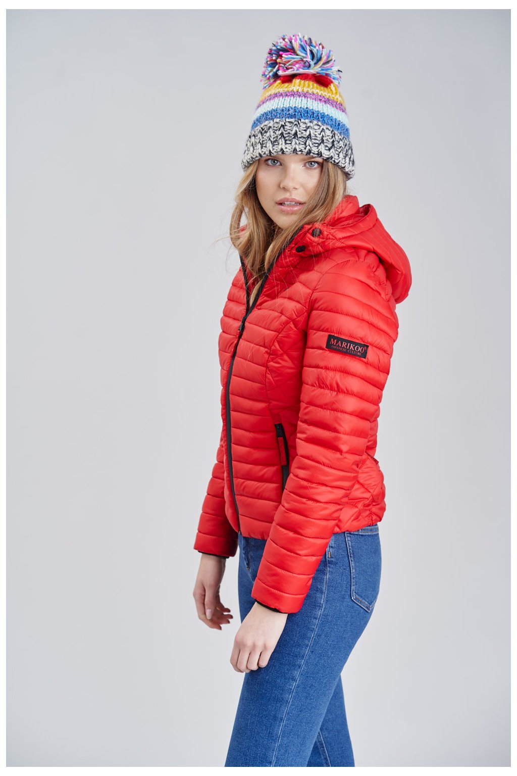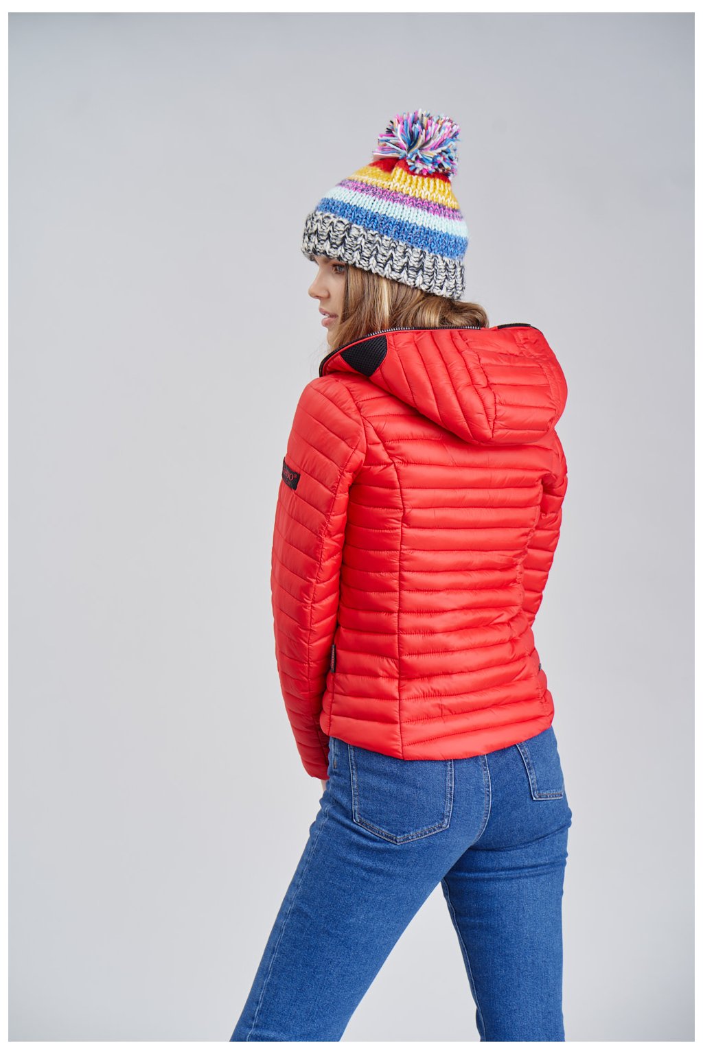 Červená bundy je lehká a velmi krásná . Doporučuji pro vhodné dámské