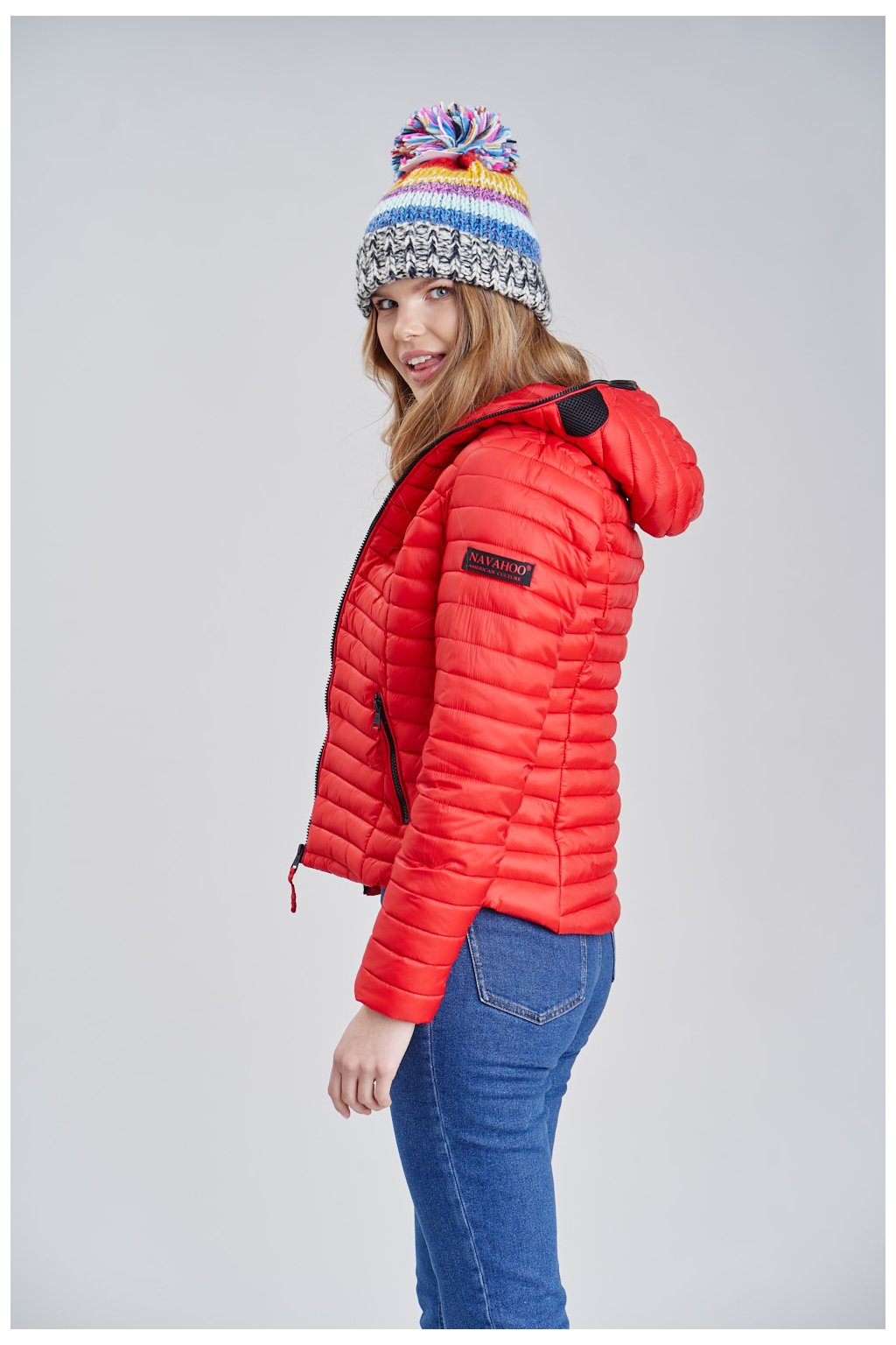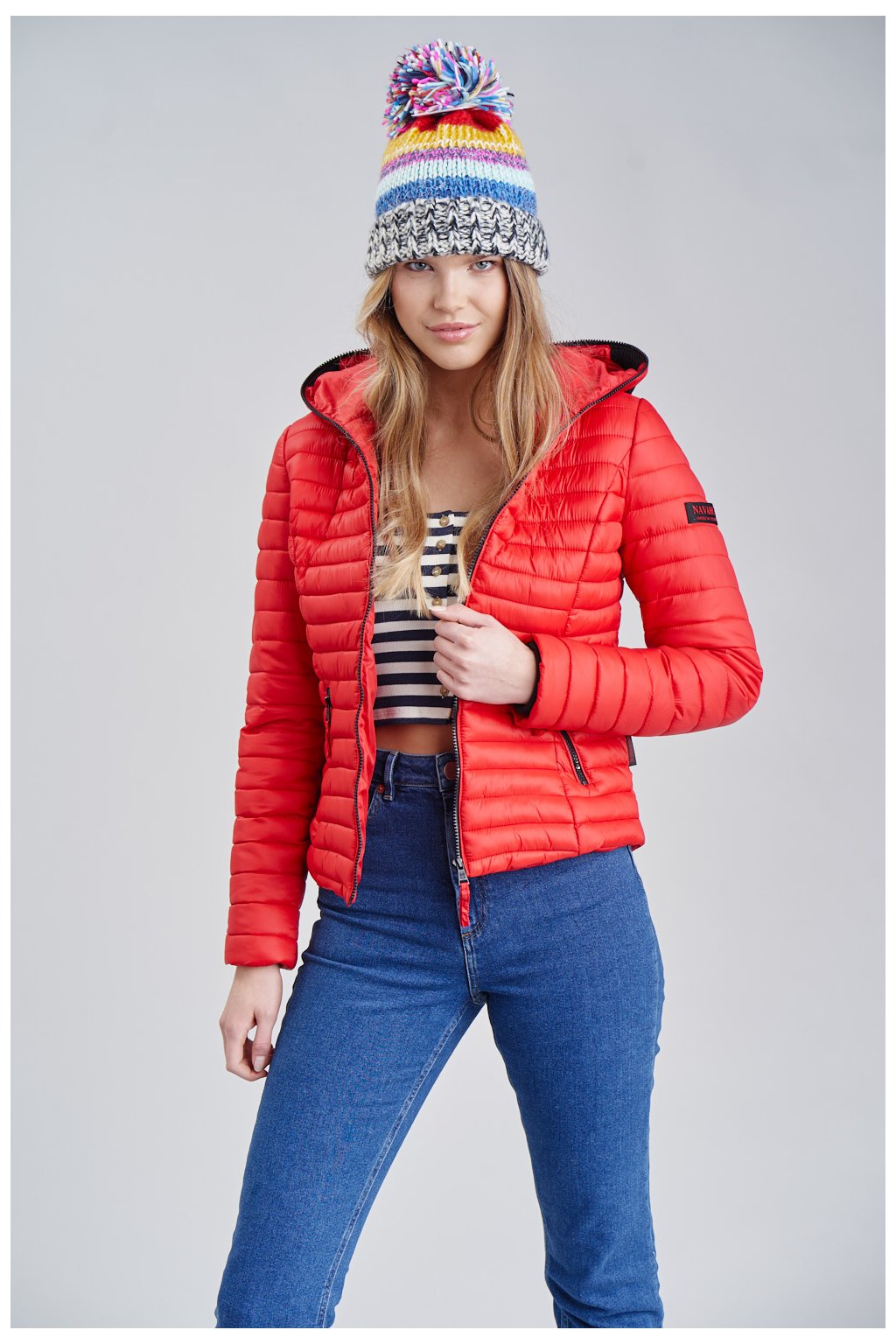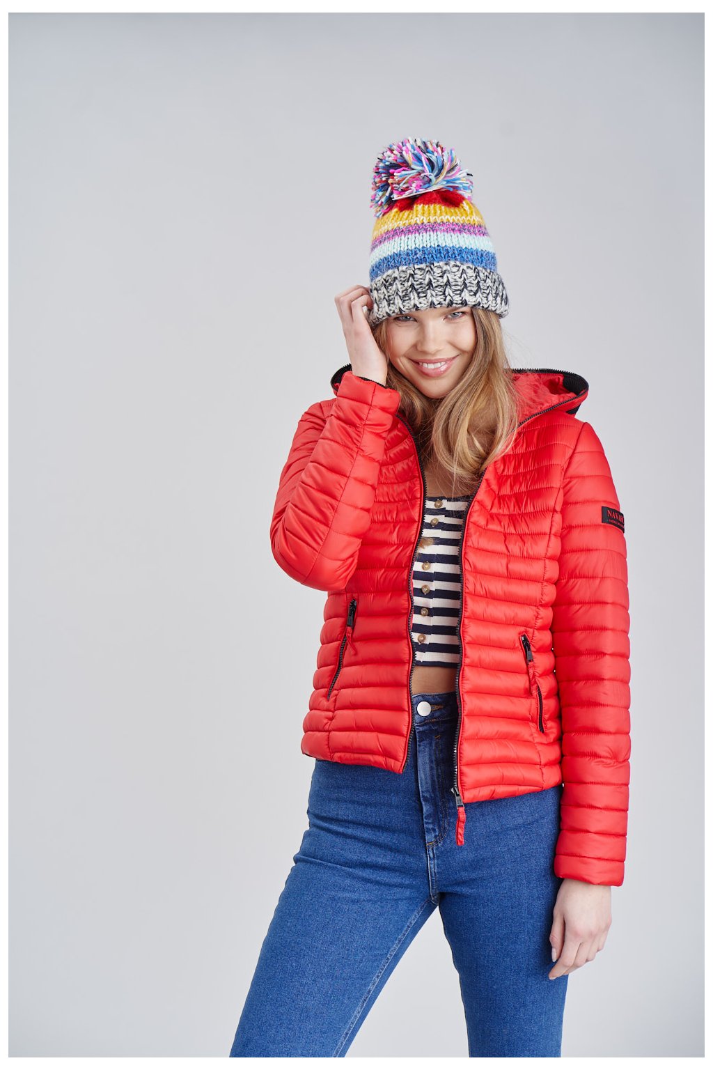 Červená bundy je lehká a velmi krásná . Doporučuji pro vhodné dámské