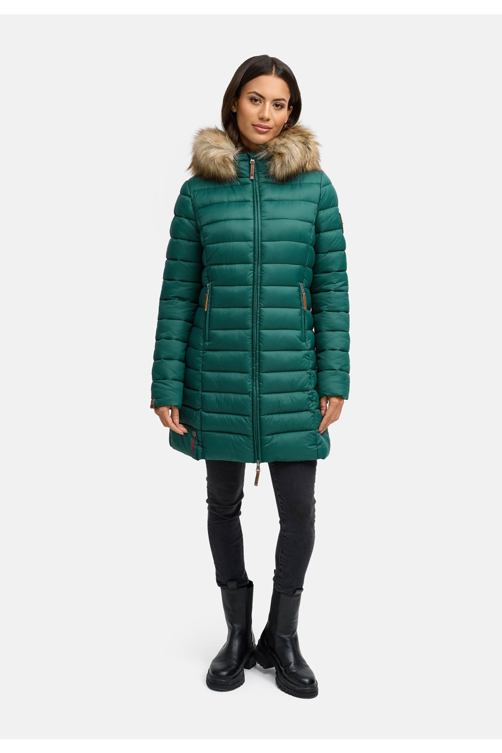 Charakteristickým prvkem je velký, měkoučký umělý kožíšek, který dodává bundě luxusní vzhled a zároveň příjemně hřeje. Kožíšek lze snadno odepnout pomocí druků, takže si můžete vzhled bundy přizpůsobit dle nálady či příležitosti. Kapuce je pevně přišitá a poskytuje dodatečnou ochranu před větrem a zimou.