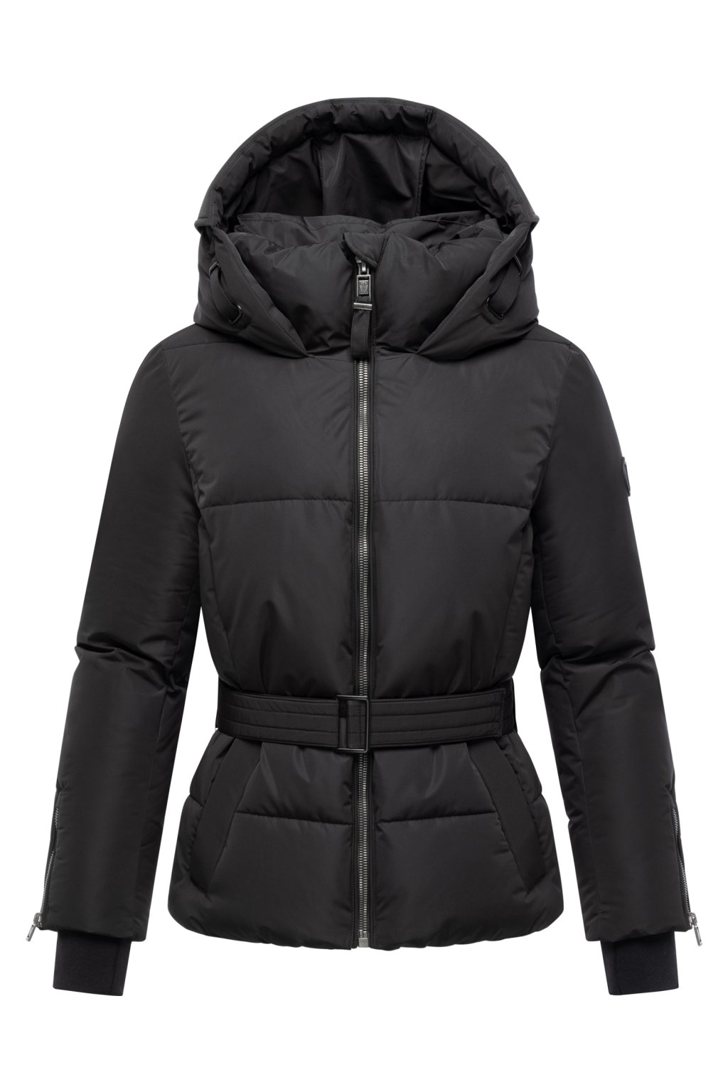 Ochrana před chladem – vysoký stojáček, integrovaná kapuce s vnitřním stahovacím cordem a dlouhé rukávové manžety s žebrovaným úpletem a zipem