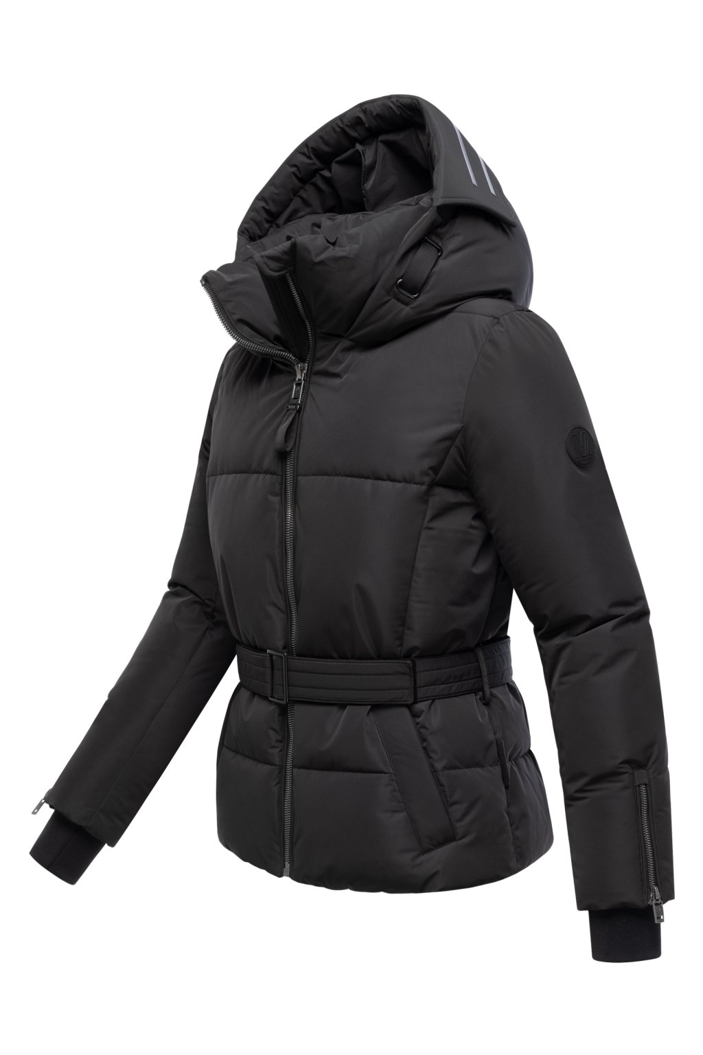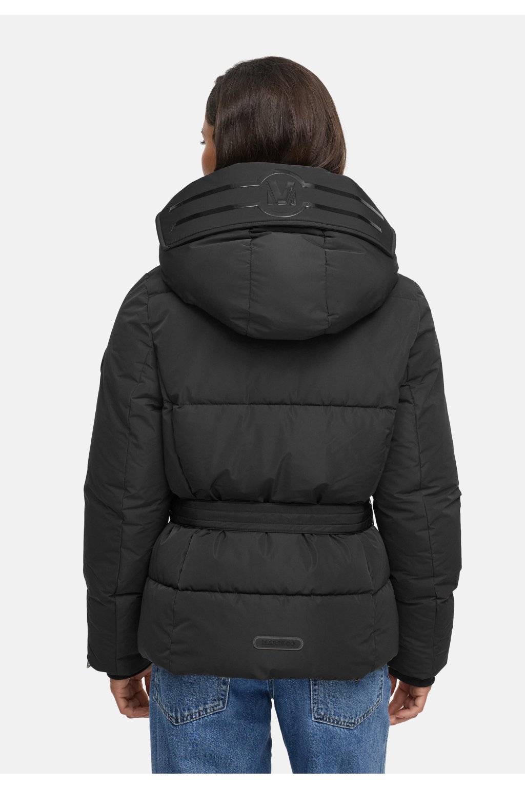 Stylové detaily – 3D gumový patch Marikoo na rukávu, logo na pásku i spodním lemu