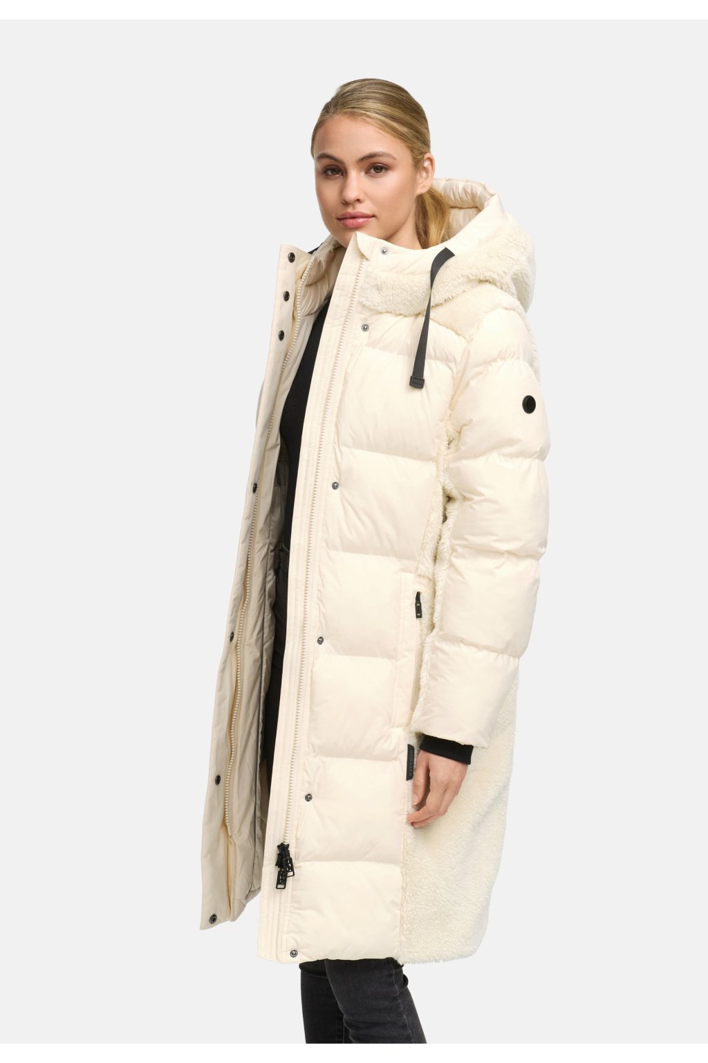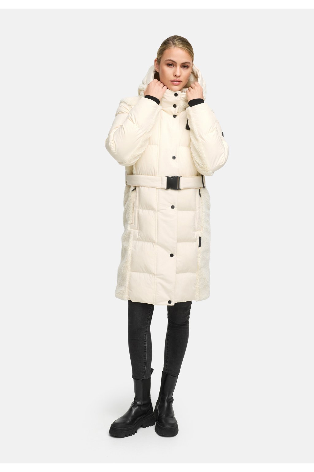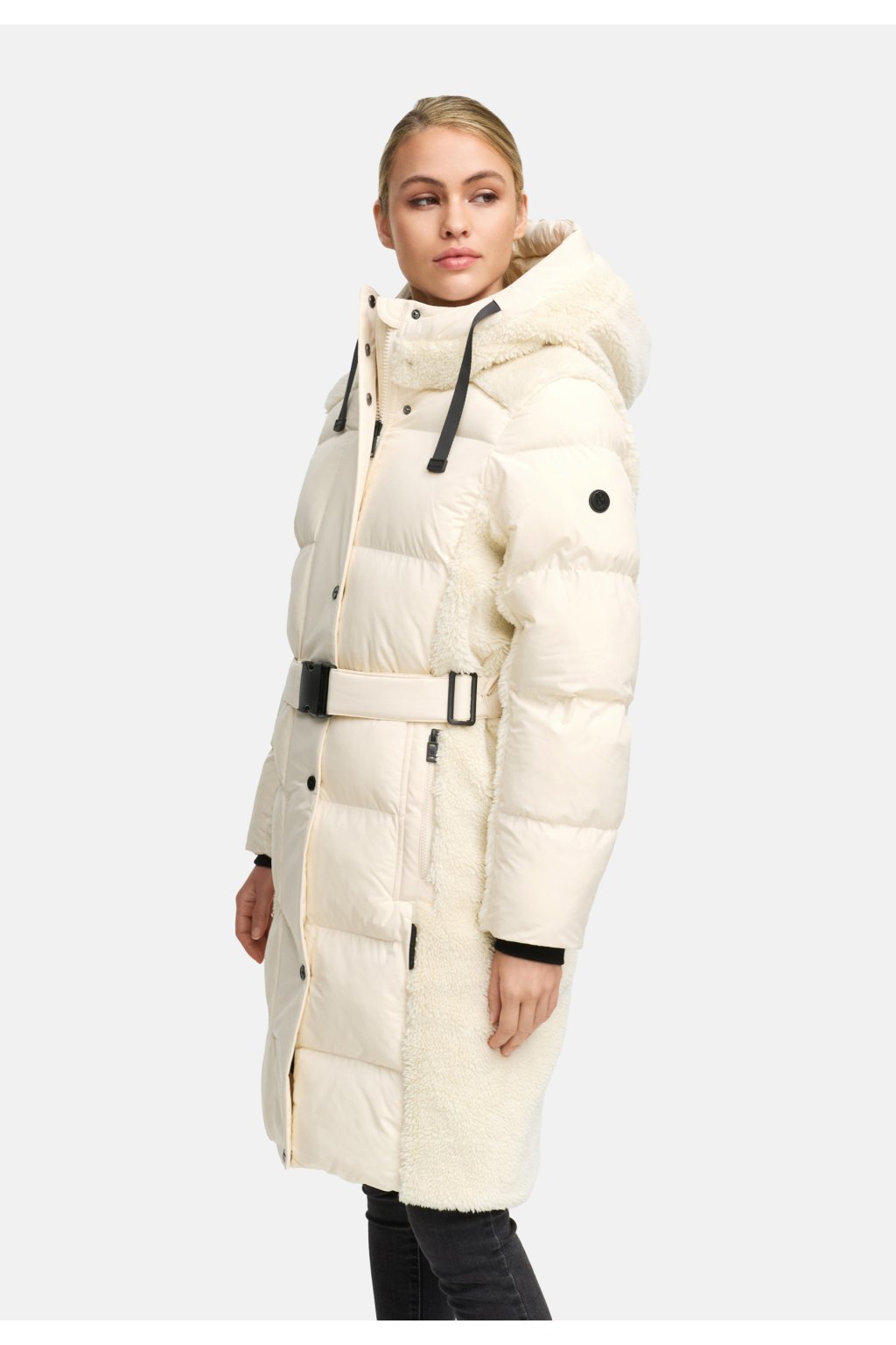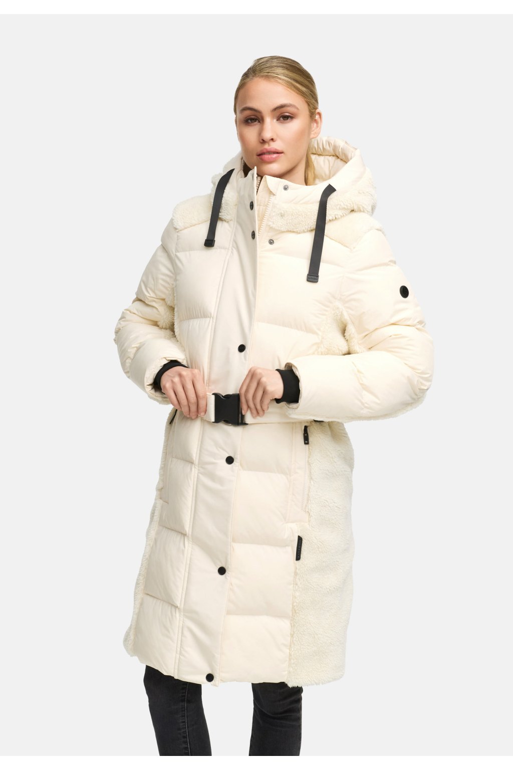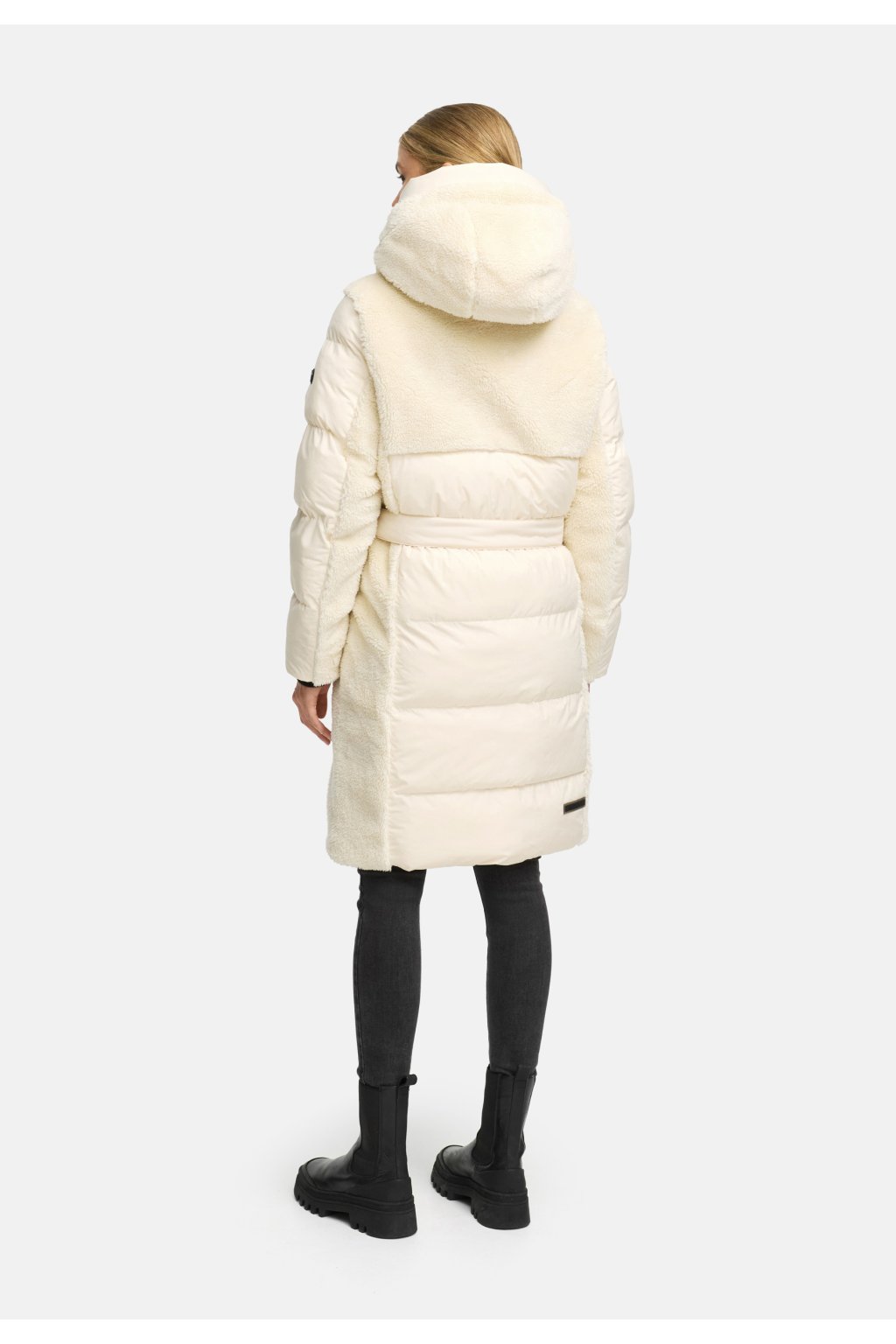 Navahoo Funkelteddy – Dámský zimní kabát s teddy fleecem a páskem - Krémová (CREAM)