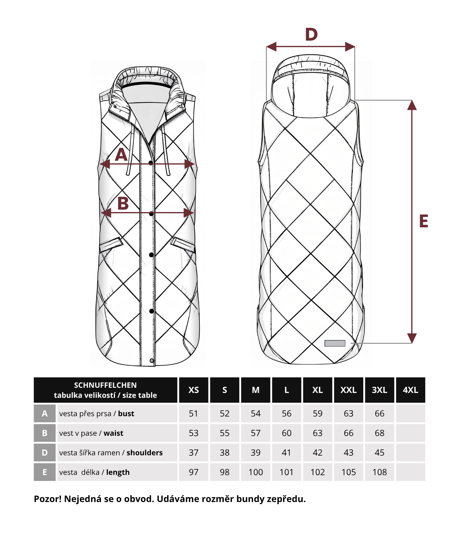 rozměry a porovnejte s touto tabulkou. Obvod je přibližně 2x tolik, co se uvádí v tabulce. Rozměry odpovídají klasickým